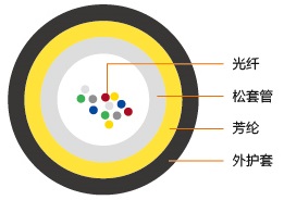 將光纖套入PBT松套管中,松套管內(nèi)油膏填充,松套管外添加芳綸加強(qiáng)元件,擠制一層外護(hù)套。