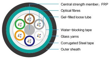 and wrapped with a layer of corrugated Steel tape longitudinally. The cable is completed with a PE outer sheath.