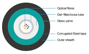 layer of corrugated Steel tape longitudinally.The cable is completed with a PE(LSZH) outer sheath.