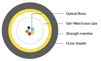 The fibers are positioned in a loose tube, then wrapped some aramid yarns as strength member. Finally is completed with an outer sheath.